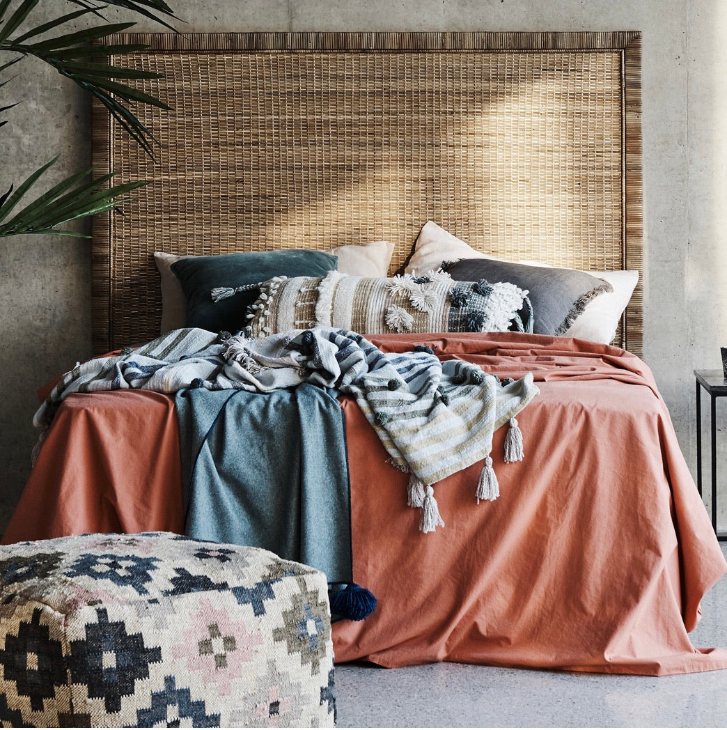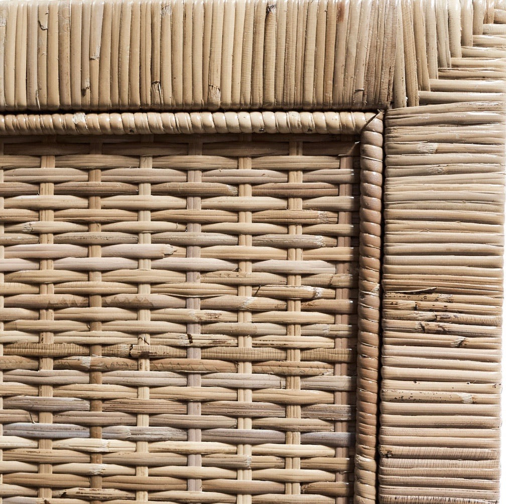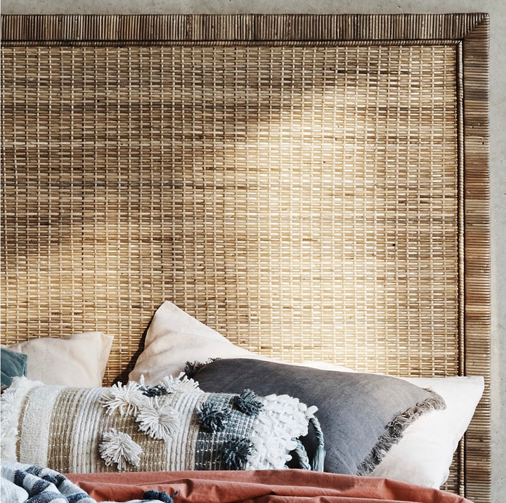 The Palm Springs Rattan Bedhead is constructed with a Mahogany frame and tightly woven Rattan. It is available in Queen and King size.