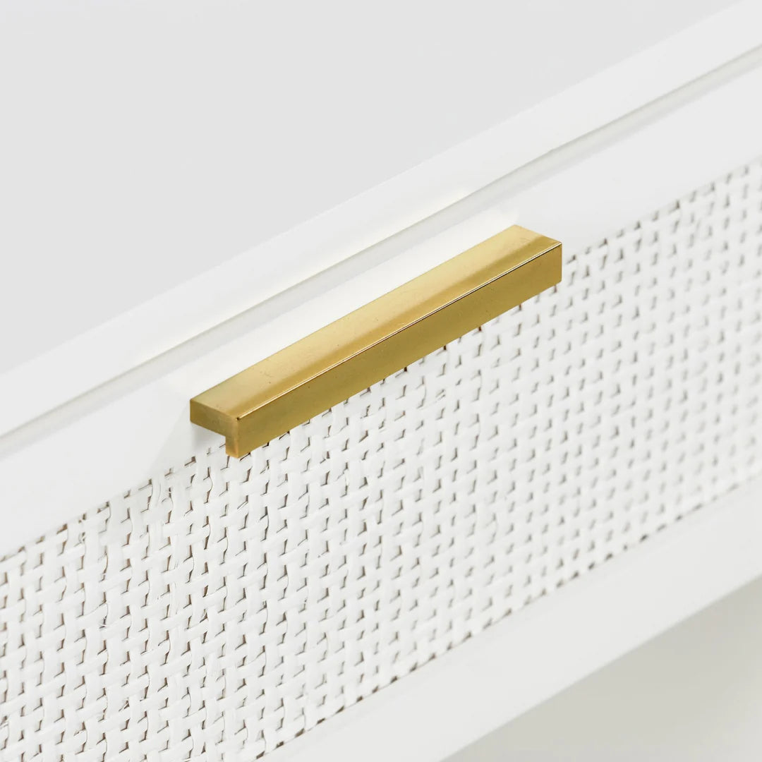 The Santorini Bedside Table in White is the perfect home for all your bedtime essentials. It features a spacious drawer complete with a stunning rattan panel and brushed gold handle. It also has an additional bottom section where you can keep some books and valuables close to your bed. This table has a low-profile frame and crisp white finish for a neat & fresh look, while the rattan drawer panel adds a timeless character to the space. It’s the perfect match for the Santorini Queen Bed, but it also blends well with any bed frame and bedroom design, making it a cost-effective choice as you can keep using it for years to come.