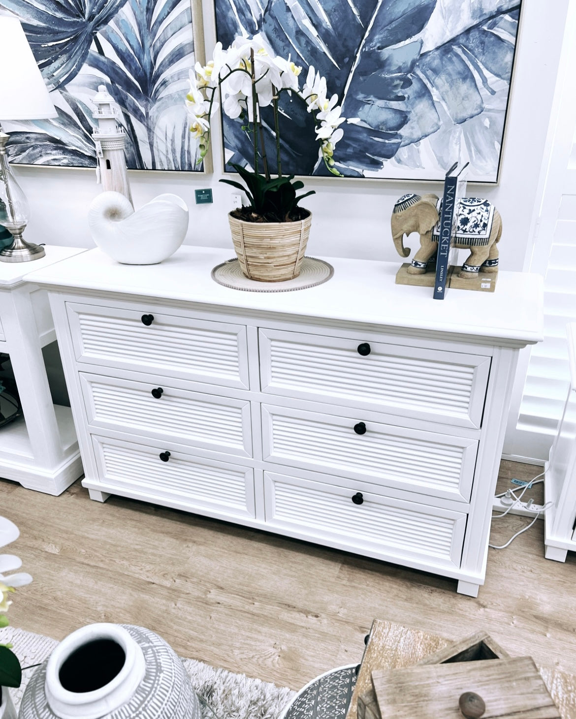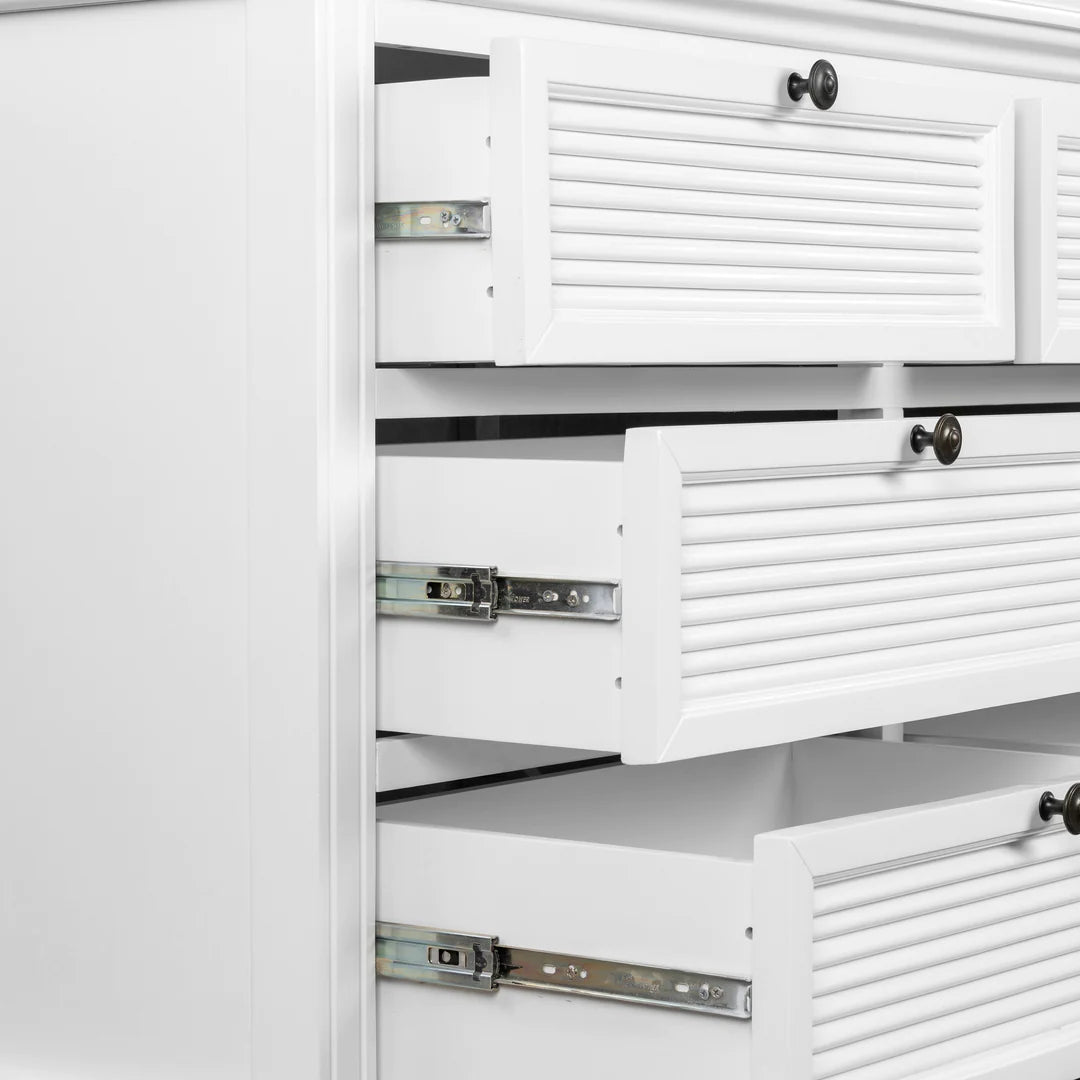 The West Beach range offers a Coastal Hamptons style. A sound structural design is completed with cross detailing for a look that is well-suited to the modern home. This dresser features six drawers.