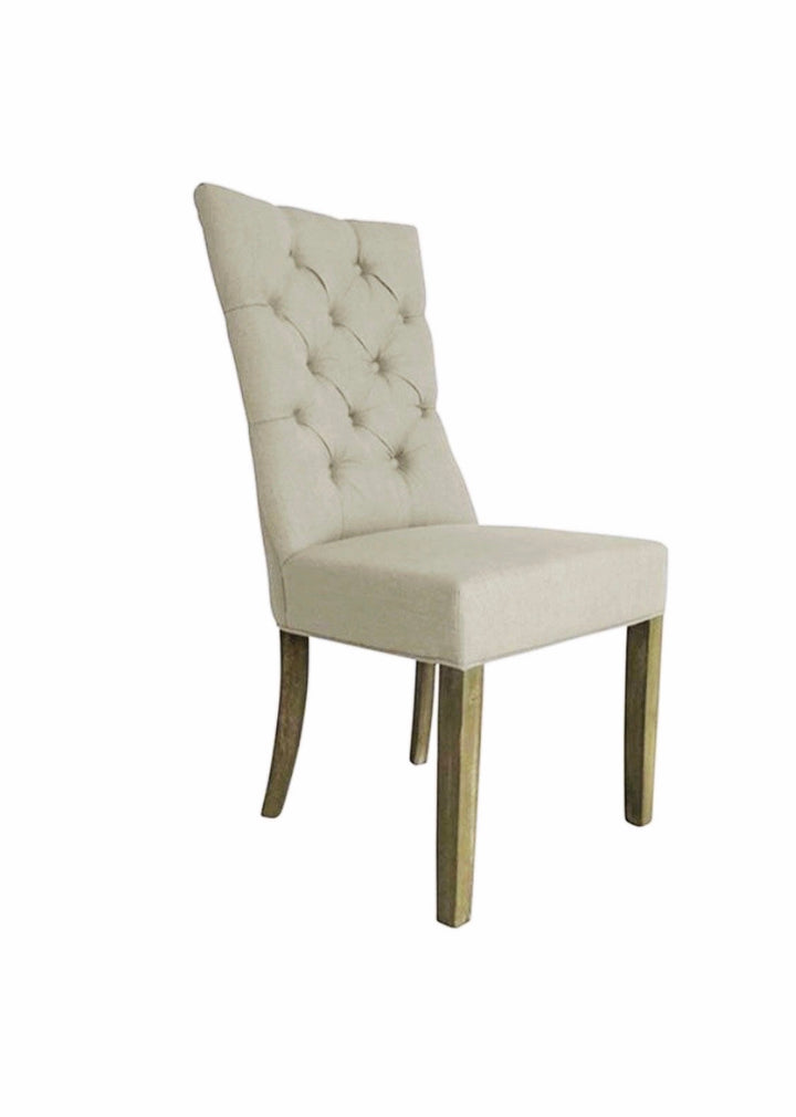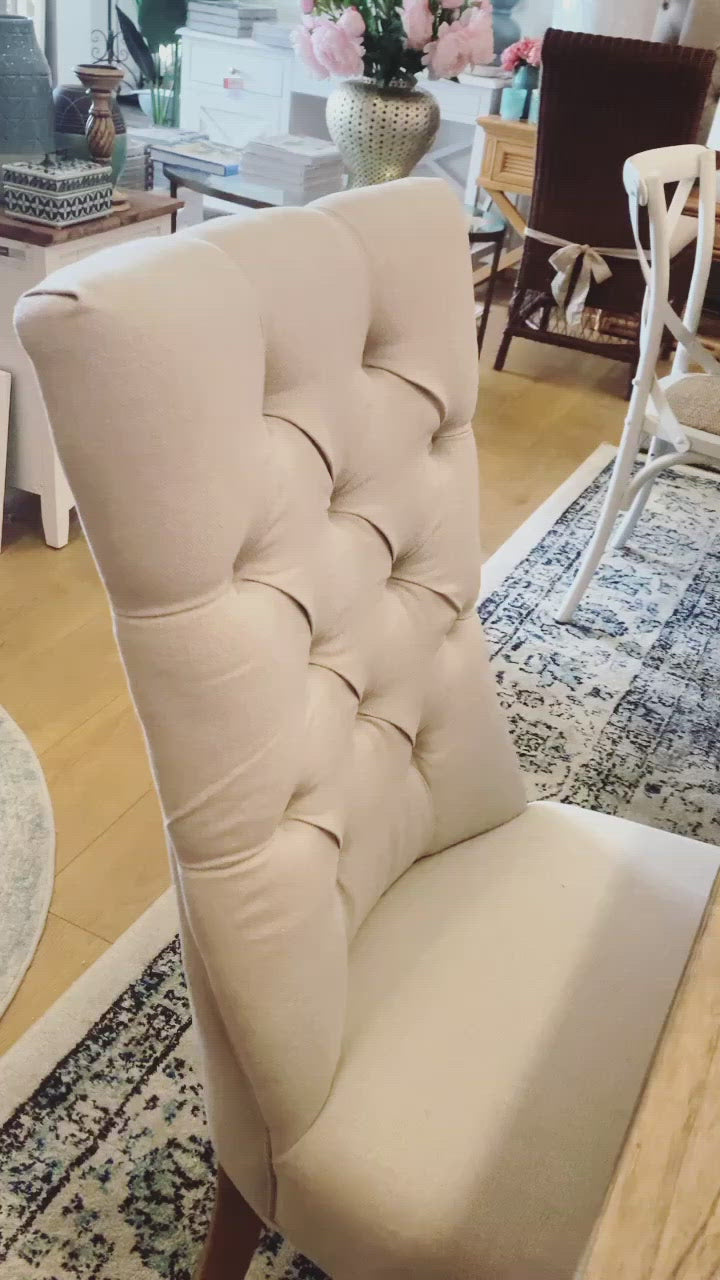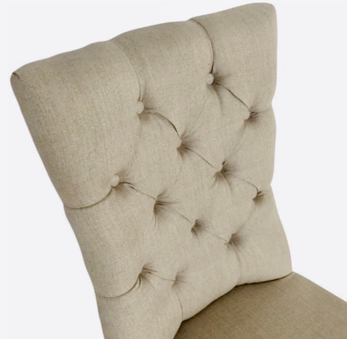 Whether your style is refined and regal or cottage-chic, this linen dining chair with wooden legs will fit the bill. Linen upholstery is timeless - giving an effortless aesthetic to your dining room. The button-tufted back is the perfect finishing touch.