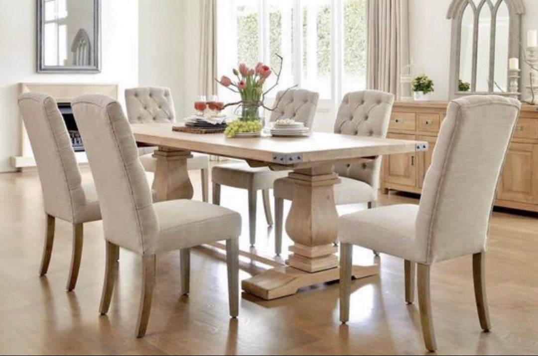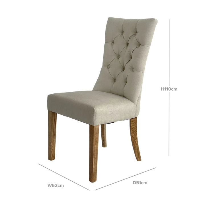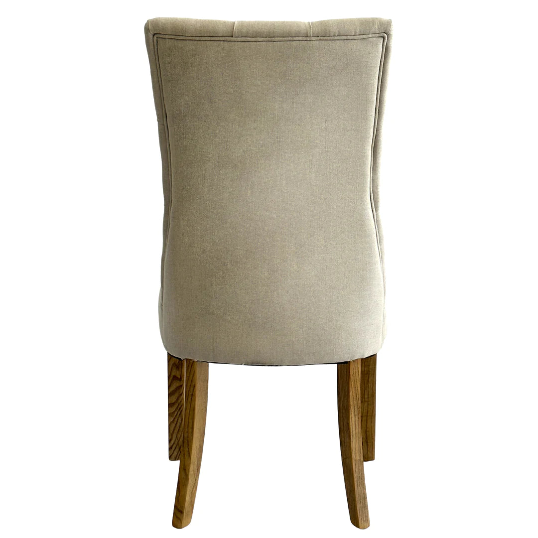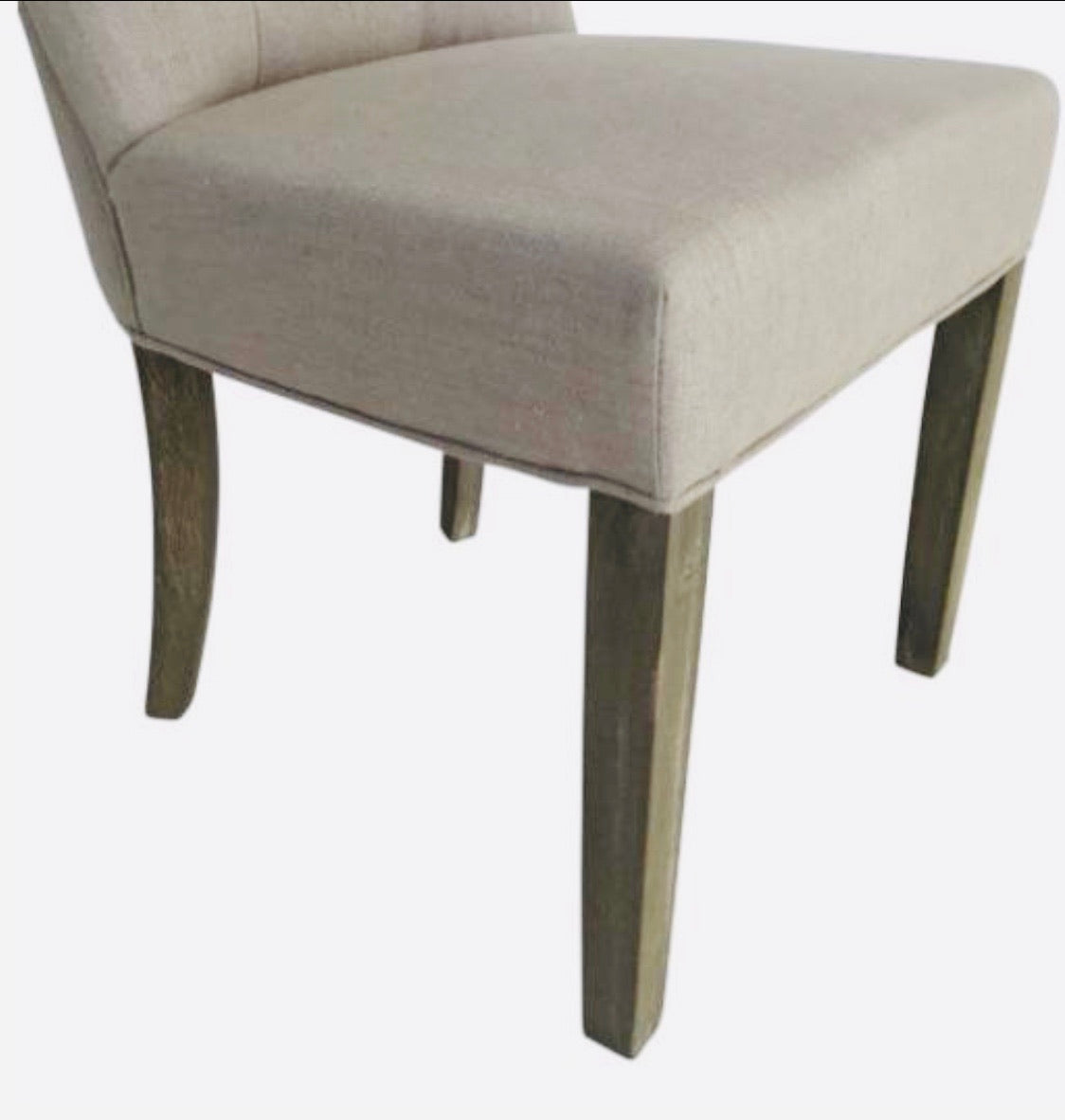 Whether your style is refined and regal or cottage-chic, this linen dining chair with wooden legs will fit the bill. Linen upholstery is timeless - giving an effortless aesthetic to your dining room. The button-tufted back is the perfect finishing touch.