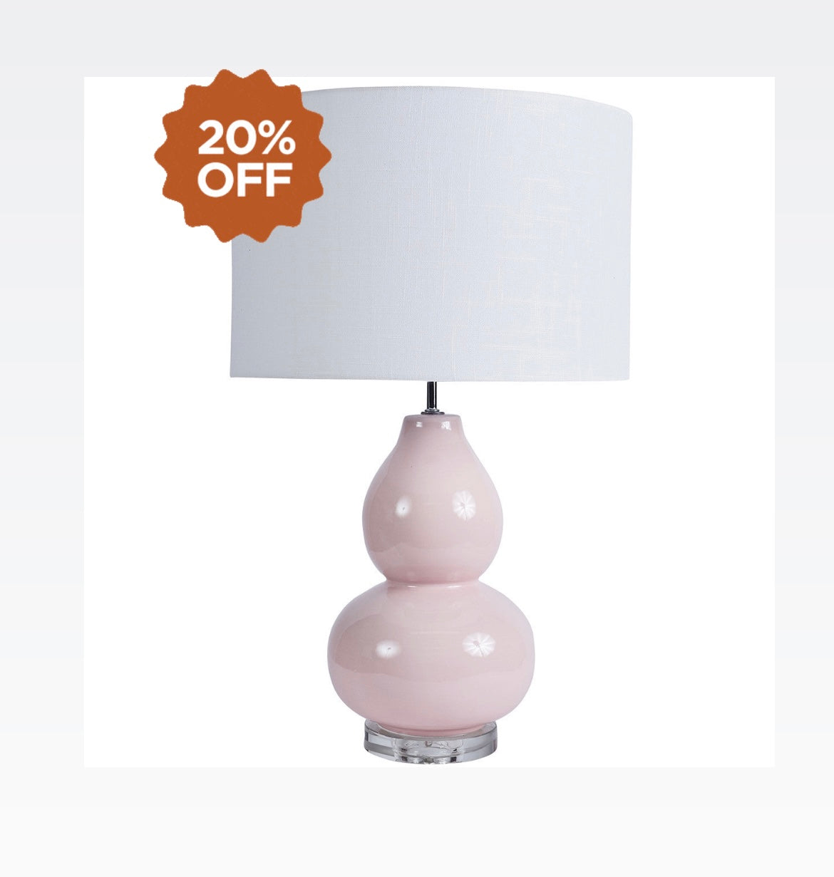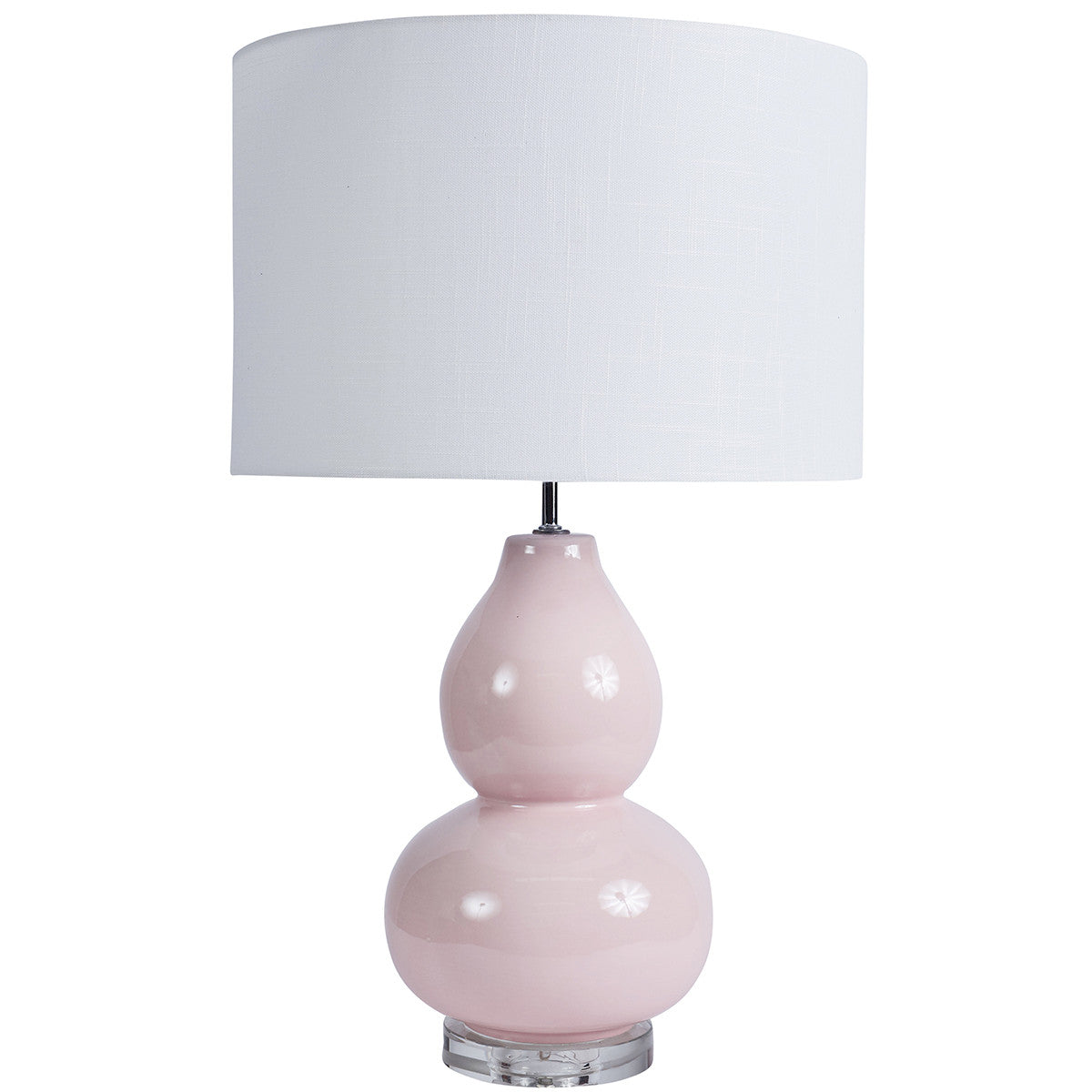 The curved base adds a sculptural element, while the acrylic base gives it a distinctive twist. It comes in a fresh fun cotton candy with a white cotton shade.