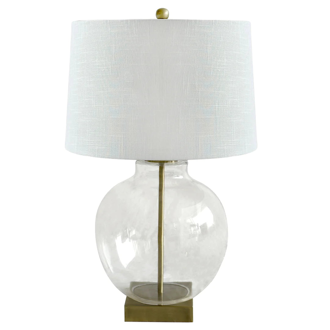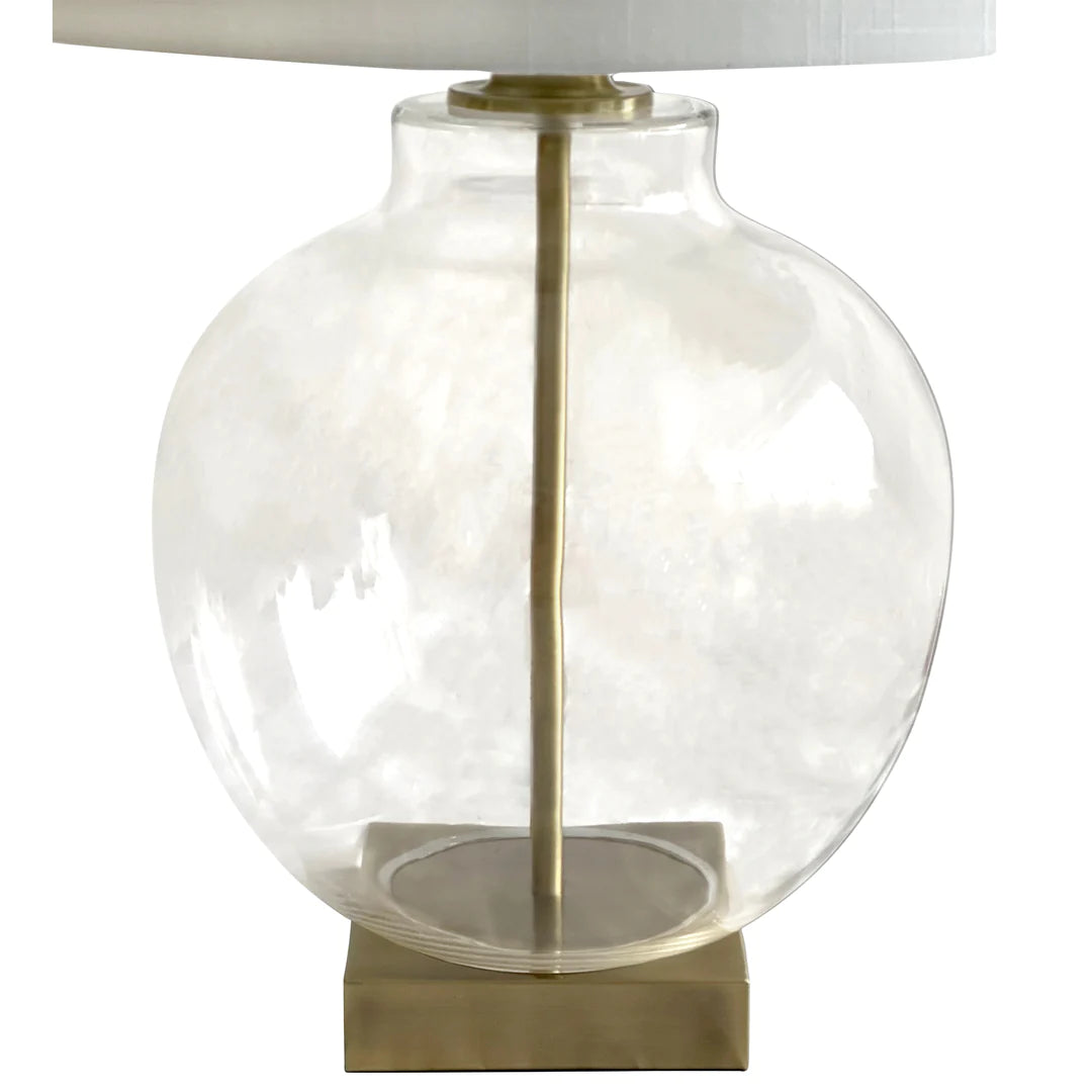 This classic glass and antique brass lamp with white linen is the perfect addition to any room. Its sleek glass base and white linen shade provides a sophisticated aesthetic, while the glass and linen materials offer a modern and sleek look. The combination of matte and polished finishes creates a timeless and sophisticated aesthetic.