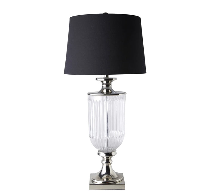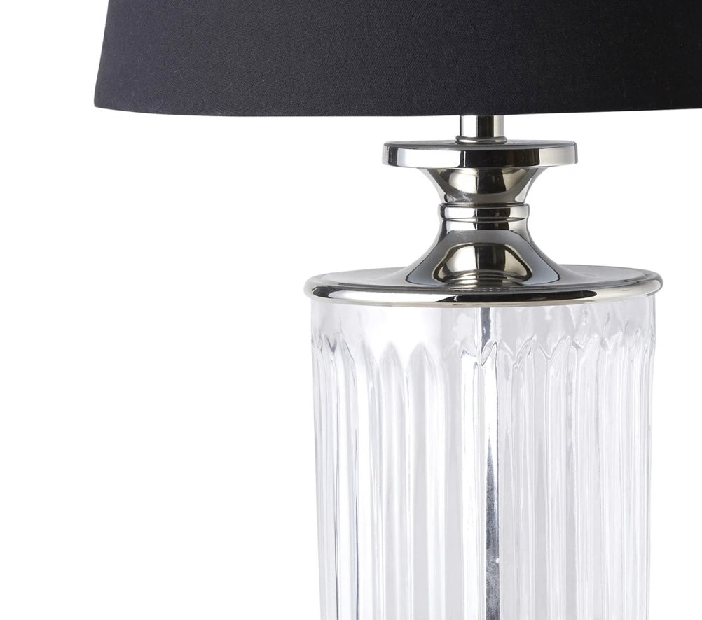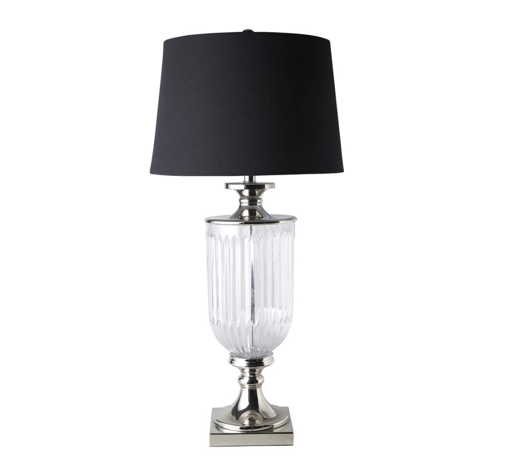 Glass Nickle Lamp with black linen shade
