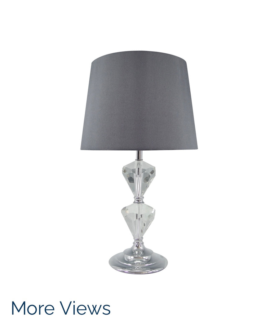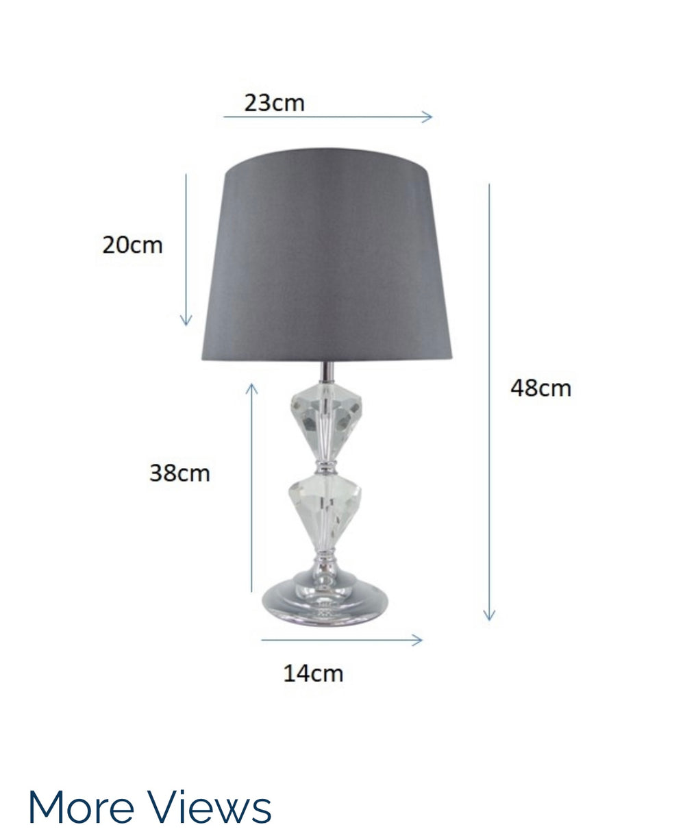 This lamp has a glamorous crystal body design with a matching dark grey shade to complement.