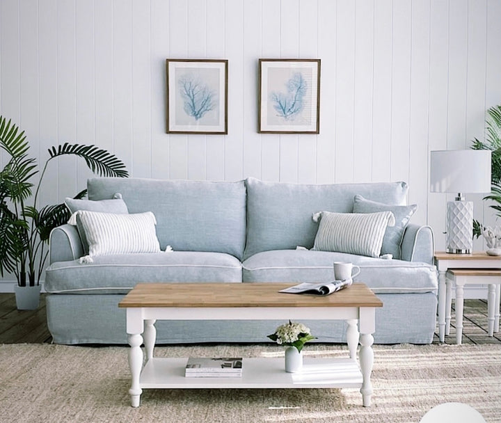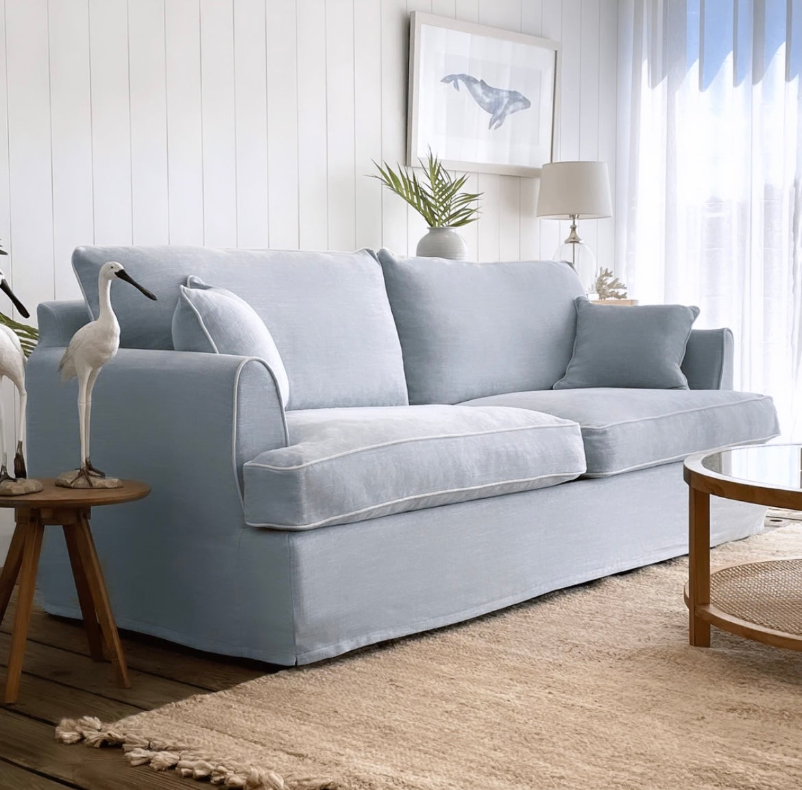 Modern design meets timeless taste with this updated take on an upholstered 3 seat sofa with removable covers. It's a contemporary reimagining of coastal living.