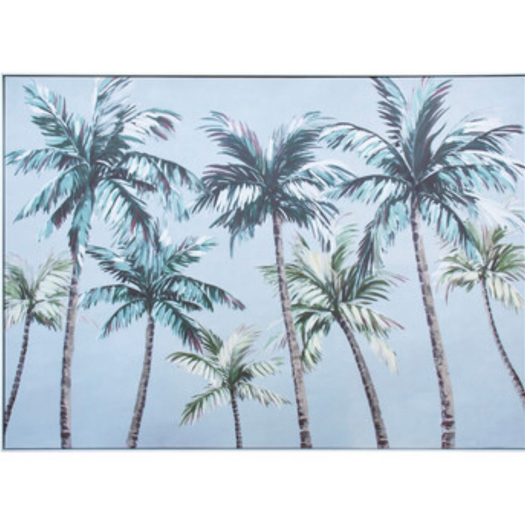 Elevate your space with this Framed Canvas, a stunning depiction of serene palm trees that exudes calm and exotic charm. Crafted with high-quality canvas, set in a durable pine frame, and finished with a protective resin, this wall art measures a generous 100x140cm and promises to be a captivating focal point in any room.