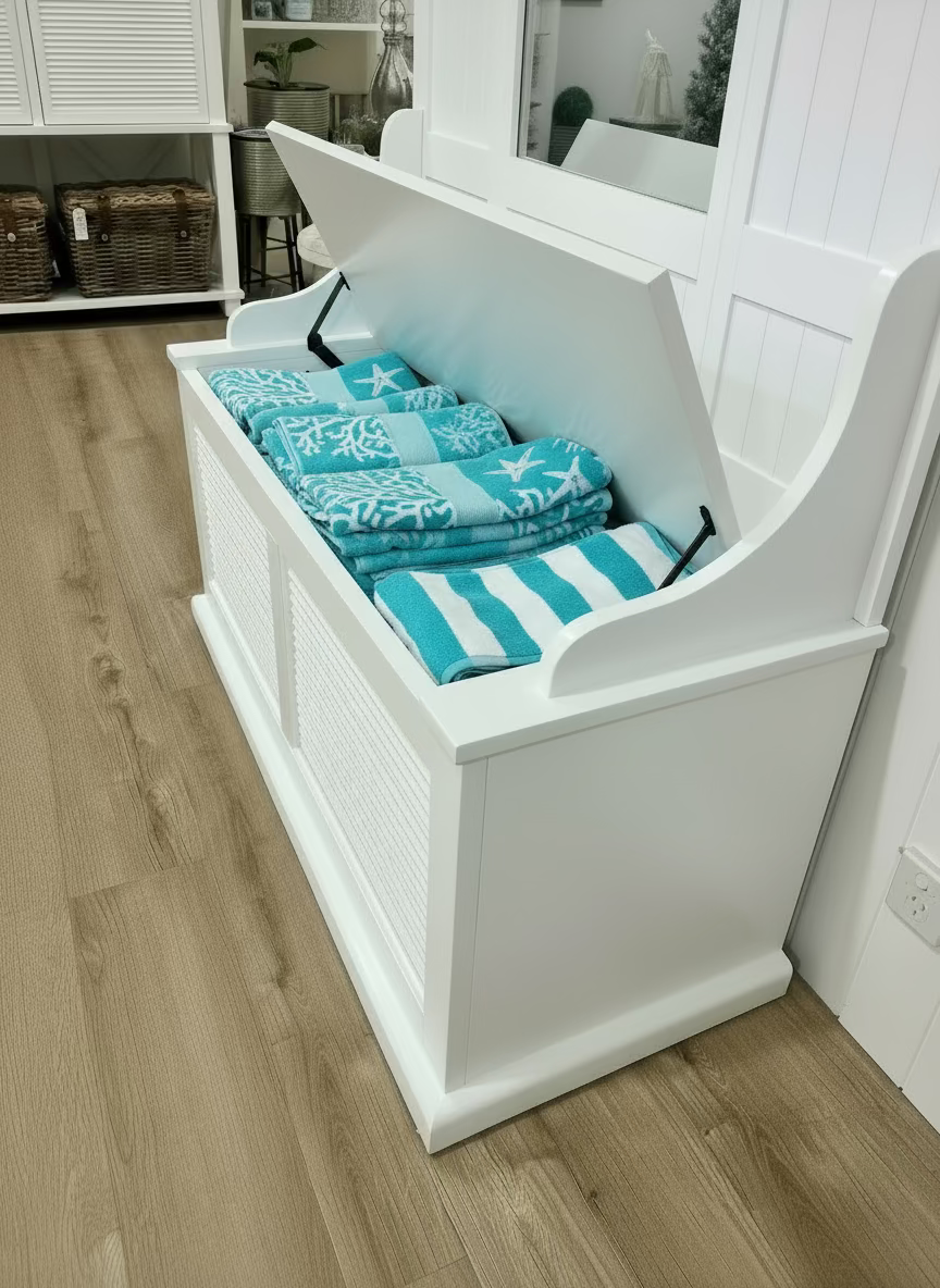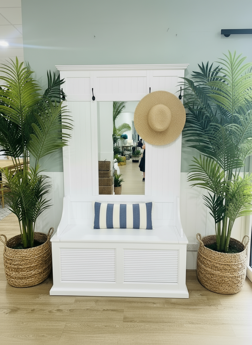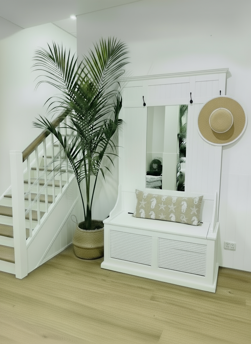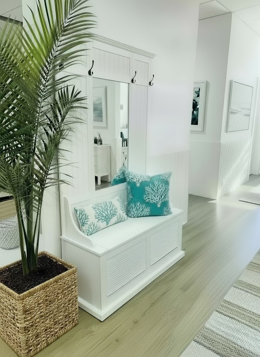 The West Beach Hall Tree effortlessly brings a coastal vibe to your hallway entry. It's the perfect, stylish spot for stashing beach towels and shoes right where you need them.