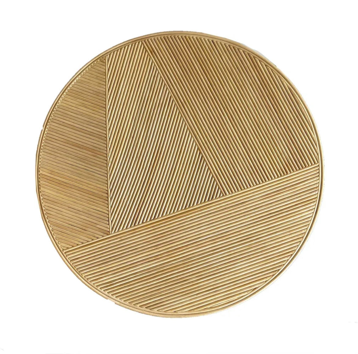 The Avalon side table combines a cylinder silhouette with reed rattan overlays  to create modern geometry.