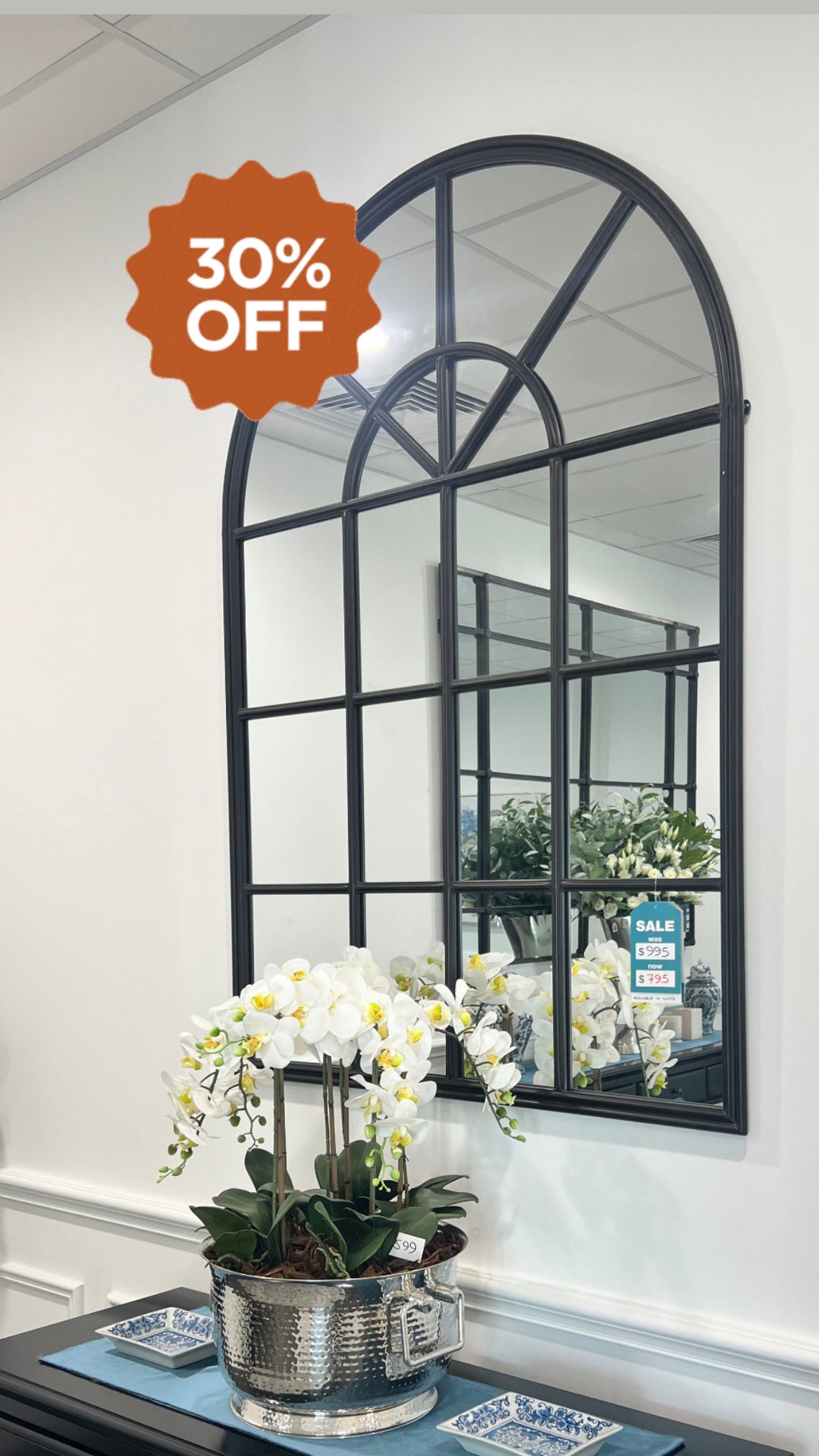 Add a little drama to your space with this stylish industrial-inspired mirror. Edged with iron trim, it offers an arch shape and pane design. Style above a sideboard or mantle to maximise the impact.