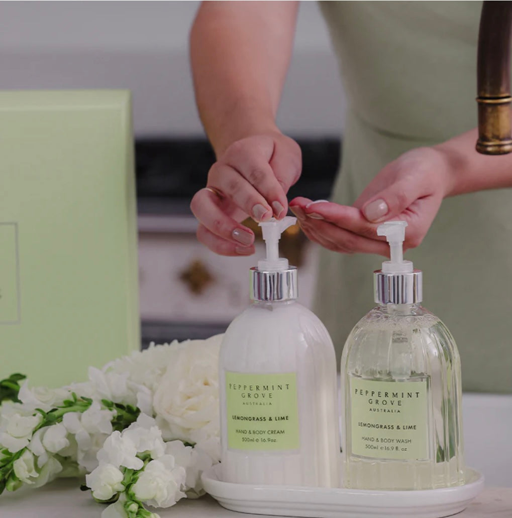 This luxurious Hand Care Gift Set will become your new kitchen or bathroom staple. Featuring our signature Hand & Body Wash and Hand & Body Cream 500ml in our best-selling Lemongrass & Lime. Display on our special edition Ceramic Tray.
