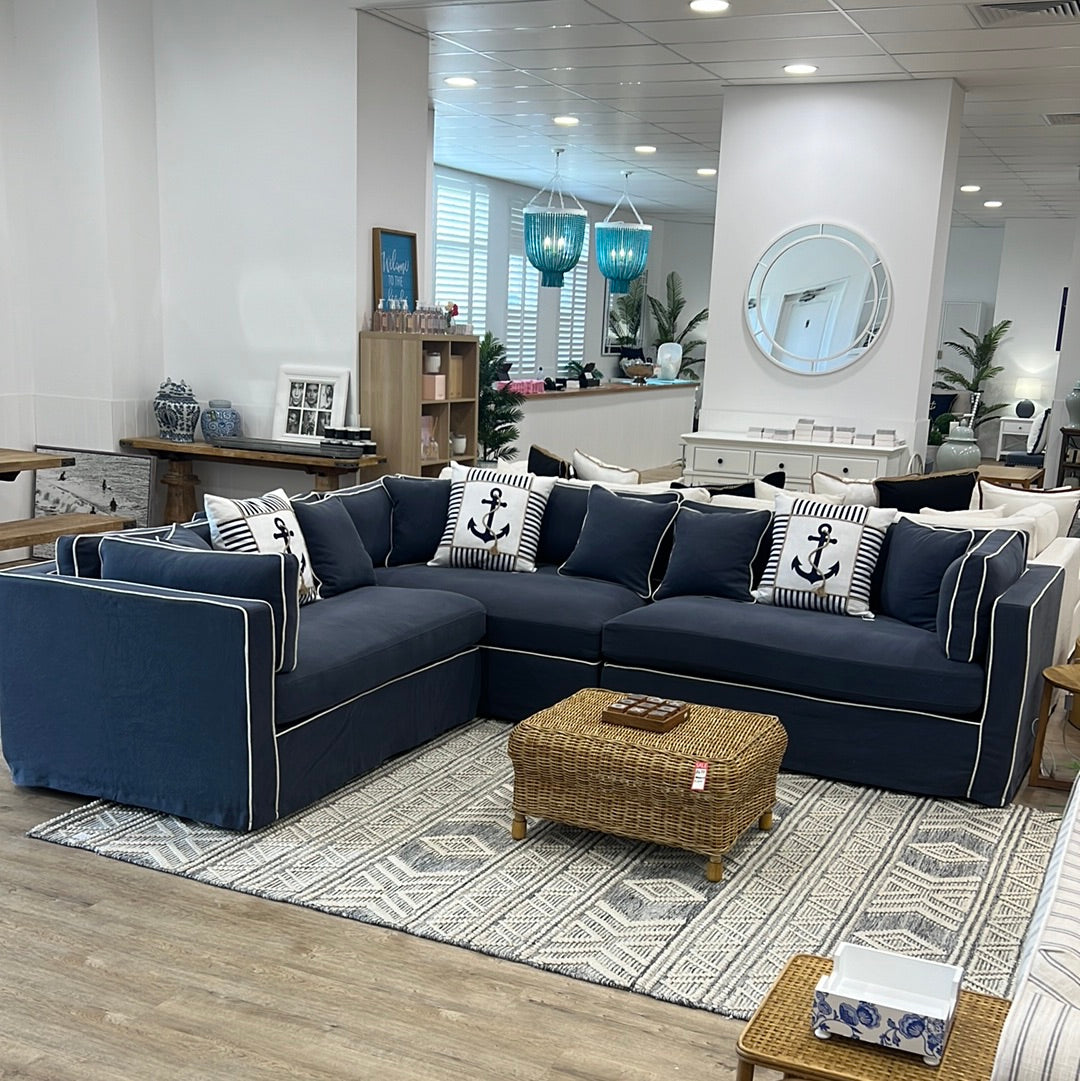 Newport Modular Navy with White Piping Left Side